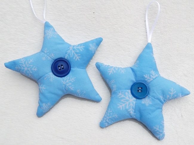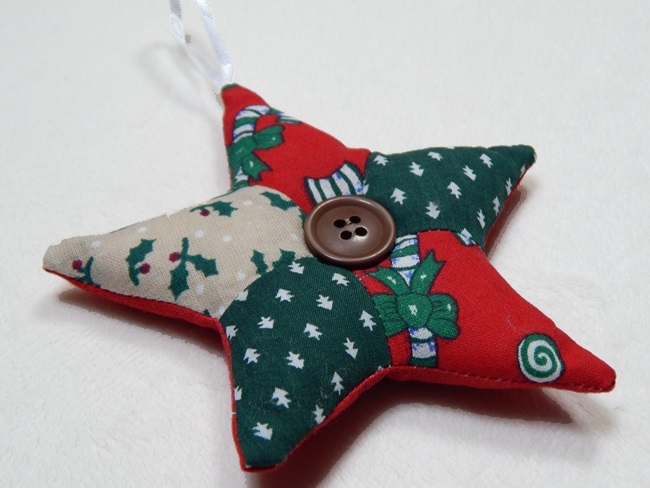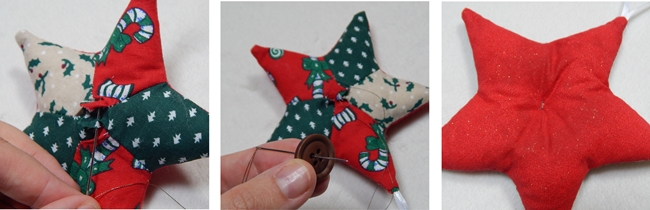 • Stitch the button on tightly right over the hole. Stitch all the way through to the back of the star, being as neat as possible on the backside.