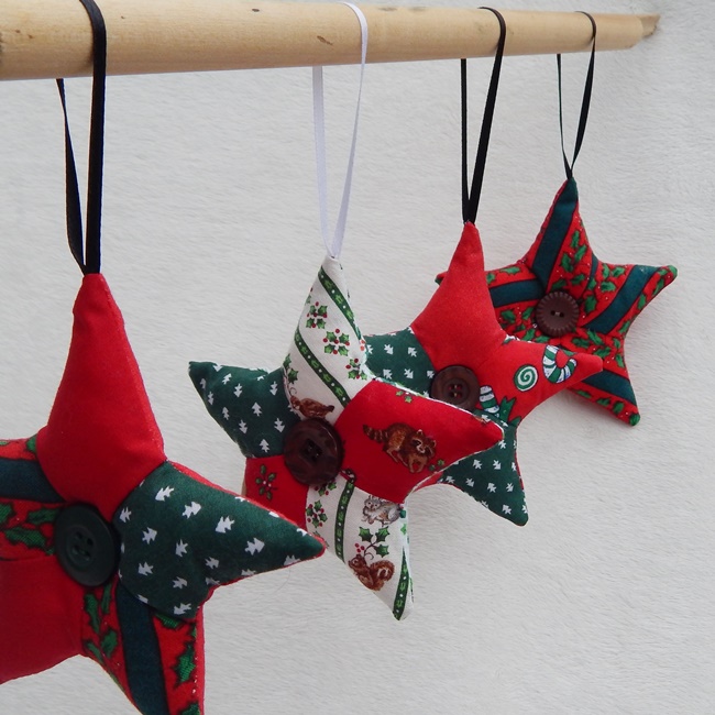 Here at Pollywoggles we are counting down 'till Christmas and as of today there are only three more weeks to go! If your fabric stash looks anything like mine, this time of year is when you start to realize how much scrap Christmas fabric you have... and start wondering what to do with it. Here is a simple project to use up a whole bunch of small pieces and make a unique handmade gift or decoration at the same time.