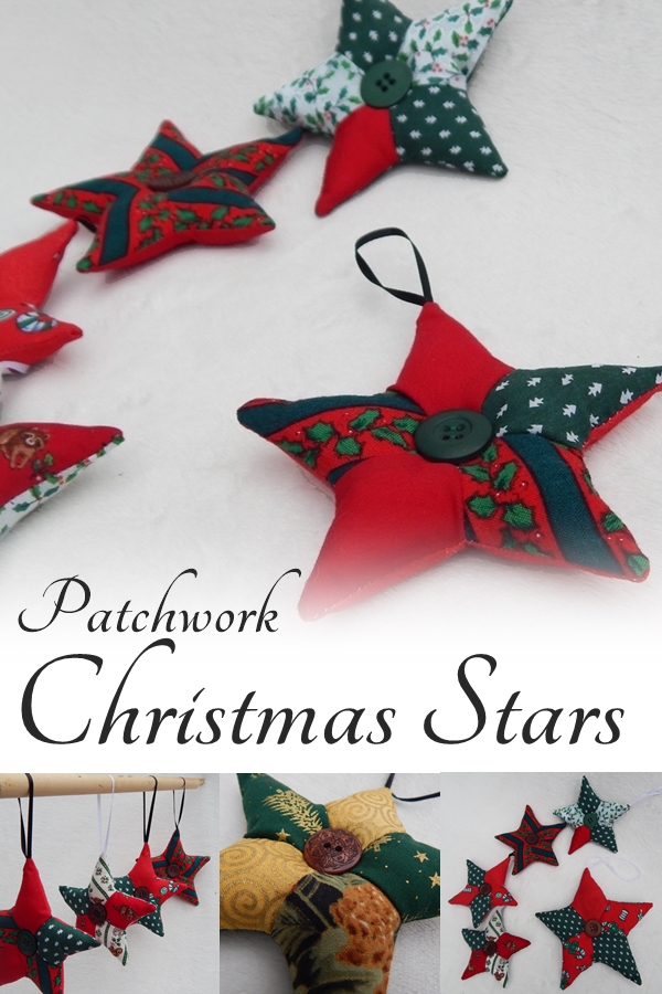 These stars take about 10-15minutes to complete if you do them one at a time, but can be done faster if you make a bunch "assembly line" style. Cutting the patchwork pieces in bulk is a breeze with a rotary cutter and cutting mat, and it's so addicting you might find that you quickly end up with more pieces than you planned!