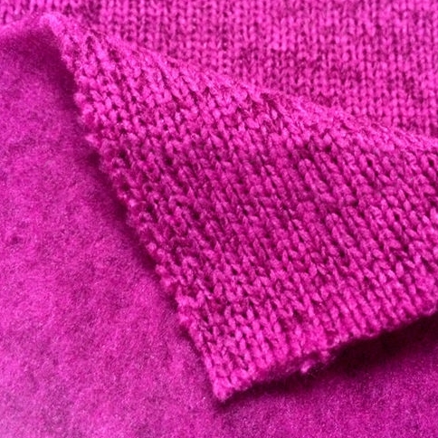 Sweater Fleece might be more commonly known as Sweater Knit, but I have seen it listed both ways so I'm including it here as well. Sweater Fleece looks like a knitted sweater on one side but has the brushed look of fleece on the other. Depending on how tightly the sweater side was knit, it may or may not have enough stretch to work with a fleece pattern.